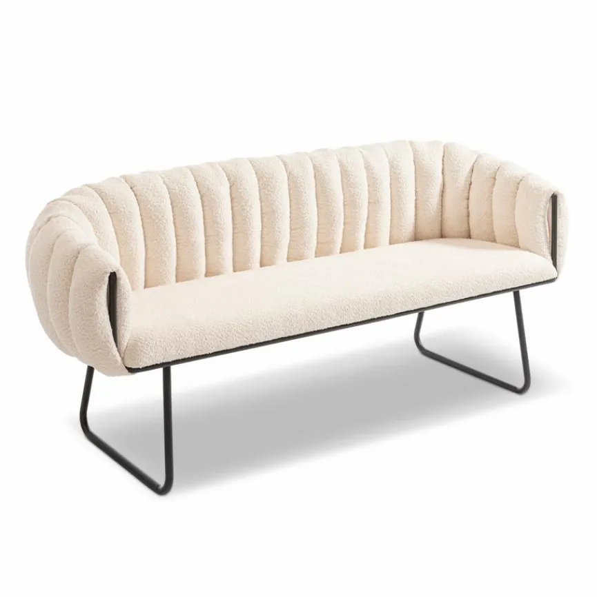 Die flauschige Bank Henry lädt sofort zum gemütlichen Pausieren ein. Bis zu drei Personen können auf dieser charmanten Sitzbank Platz nehmen. Ihr schmales Design macht sie nicht nur zum idealen Sitzmöbel für Wartebereiche, sie passt auch perfekt zu Hause in den Flur. Die breiten, vertikal verlaufenden Steppnähte der Bank Henry spielen mit Design-Elementen des Art Déco und machen sie so zu seiner modernen Interpretation.