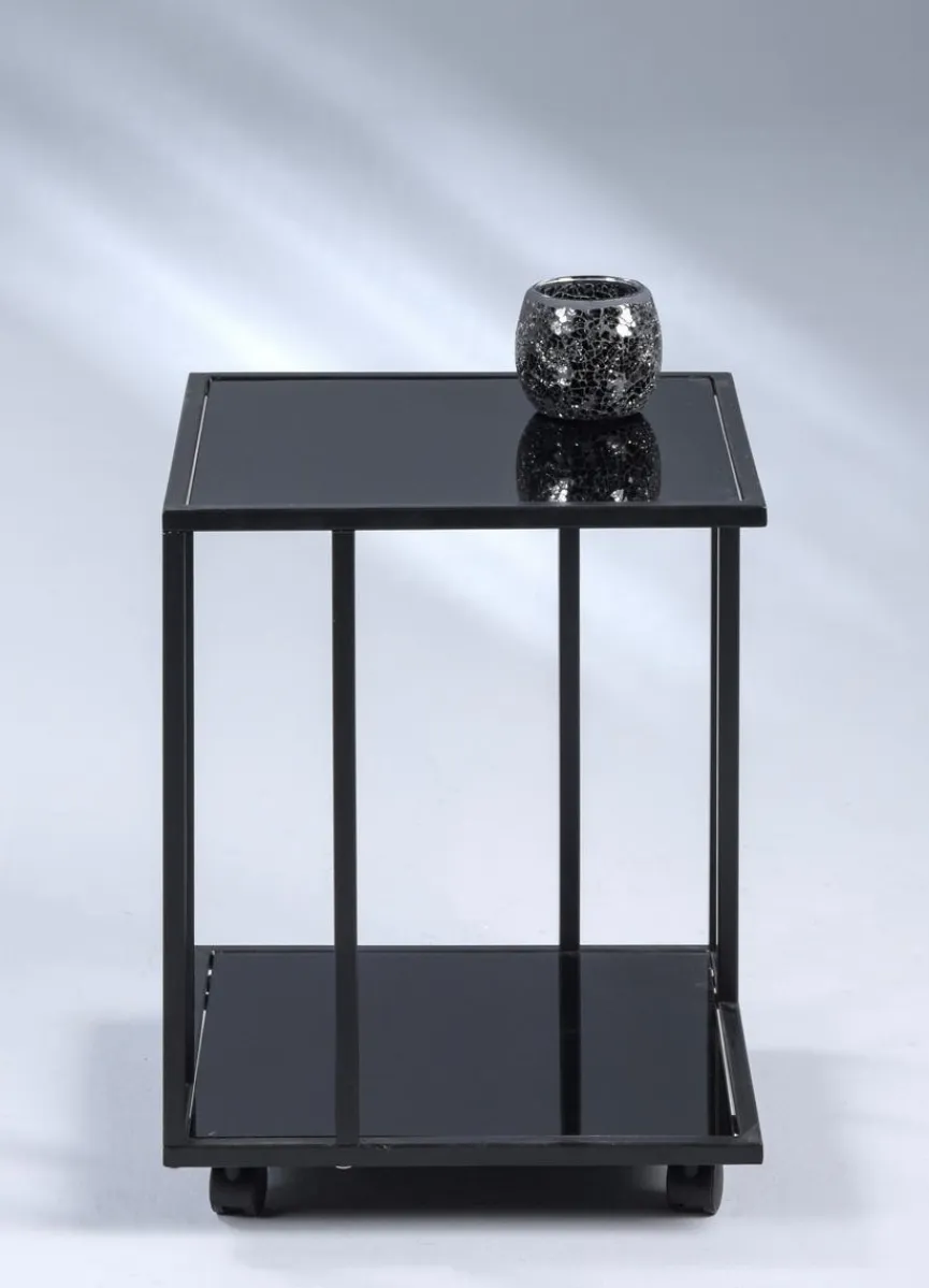 Mit dem Beistelltisch Paris erhalten Sie ein zeitgemäßes Möbelstück im dunklen Design. Dank des robusten Materials und eines pulverbeschichteten Gestells ist er sehr unempfindlich und langlebig. Außerdem wurden Rollen unter dem Beistelltisch Paris angebracht, sodass Sie ihn leicht verschieben und in vielen Räumen einsetzen können.