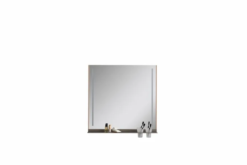 Mit dem Hängespiegel Jarin von Musterring verzaubern Sie ihr Badezimmer. Der wunderschöne Wandspiegel überzeugt durch seine hochwertige Verarbeitung und seine schicke Optik. Besonders nützlich ist die Metallablage mit einer Halterung für zwei Glasbecher. Außerdem kommt der Hängespiegel Jarin mit zwei seitlichen LED-Beleuchtungen.
