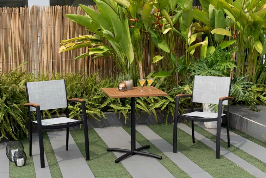 Der Balkontisch 62×62 cm bringt das Ambiente Ihres Wohnzimmers direkt nach draußen. Mit einer Tischplatte aus Eukalyptusholz und einem Stahlgestell ist dieser Balkontisch nicht nur hochwertig verarbeitet, sondern auch besonders wetterfest. Genießen Sie entspannte Stunden im Freien mit diesem kompakten und stilvollen Balkontisch 62×62 cm.