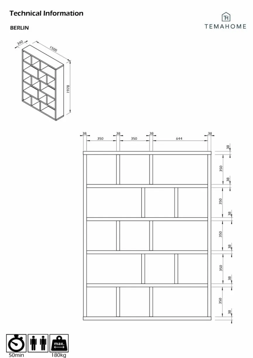 Mit dem Bücherregal Berlin präsentiert TemaHome ein Möbelstück, das nicht nur praktisch ist, sondern auch durch eine attraktive Optik überzeugt. Puristische Formen und geschmackvolles Naturholz verleihen dem Einrichtungsgegenstand ein elegantes Äußeres. Darüber hinaus bietet das Bücherregal Berlin der Marke TemaHome viele Abstellflächen.