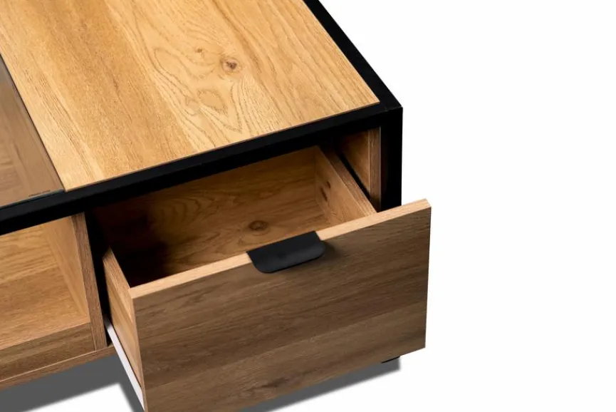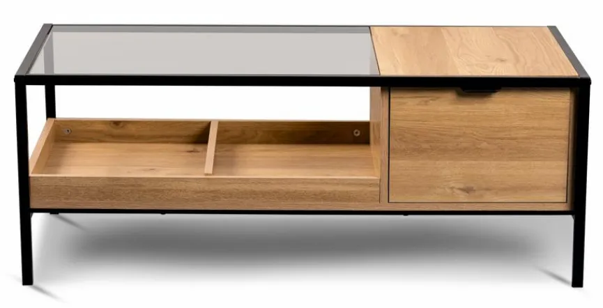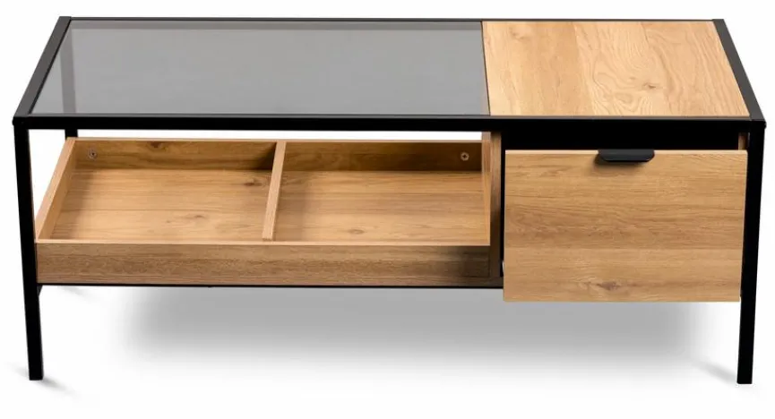 Ein echter Hingucker für jedes Wohnzimmer oder jede Lounge ist der Couchtisch Mandurah 2. Die raffinierte Kombination aus den Materialien Holz, Metall und Glas machen diesen Wohnzimmertisch zu einem herrlich gearbeiteten Möbelstück, das sich hervorragend als Blickfang eignet und jedes Heim stilvoll aufwertet. Der Couchtisch Mandurah 2 bietet außerdem viel Stauraum und Platz für Ihre ganz persönliche Dekoration oder für leckere Snacks beim Fernsehen.