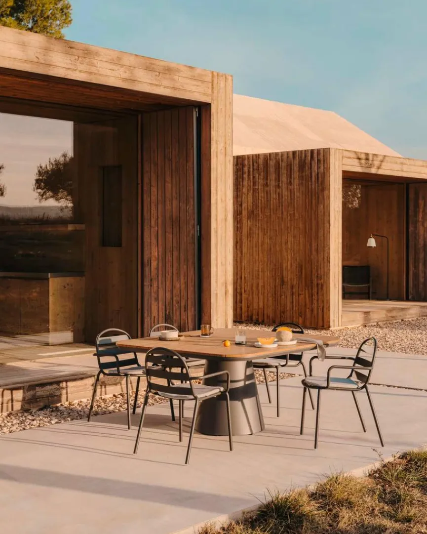 Teakholz ist ein besonders hartes, robustes und witterungsbeständiges Edelholz, das sich sowohl für Innen- als auch für Outdoor-Möbel eignet. Die charakteristische Farbe variiert zwischen mittel- und goldbraunen Tönen.