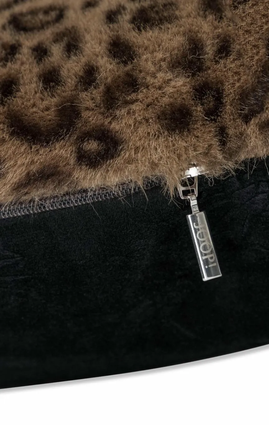 - Vorderseite aus mehrfarbigem Kunstfell im Leopardenmuster (100% Polyester)