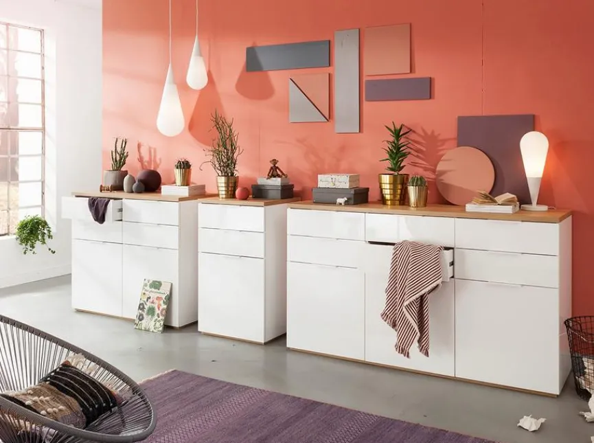 Die Kommode Mundi aus dem Hause Composad begeistert durch ein stylishes Äußeres, das sich perfekt in moderne Wohnumgebungen einfügt. Mit dem hochglanzlackierten Korpus und der farblich abgesetzten Topplatte avanciert das Möbel zu einem echten Designerstück. In mehreren Fächern bietet die Kommode Mundi von Composad viel praktischen Stauraum für kleinere Gegenstände.