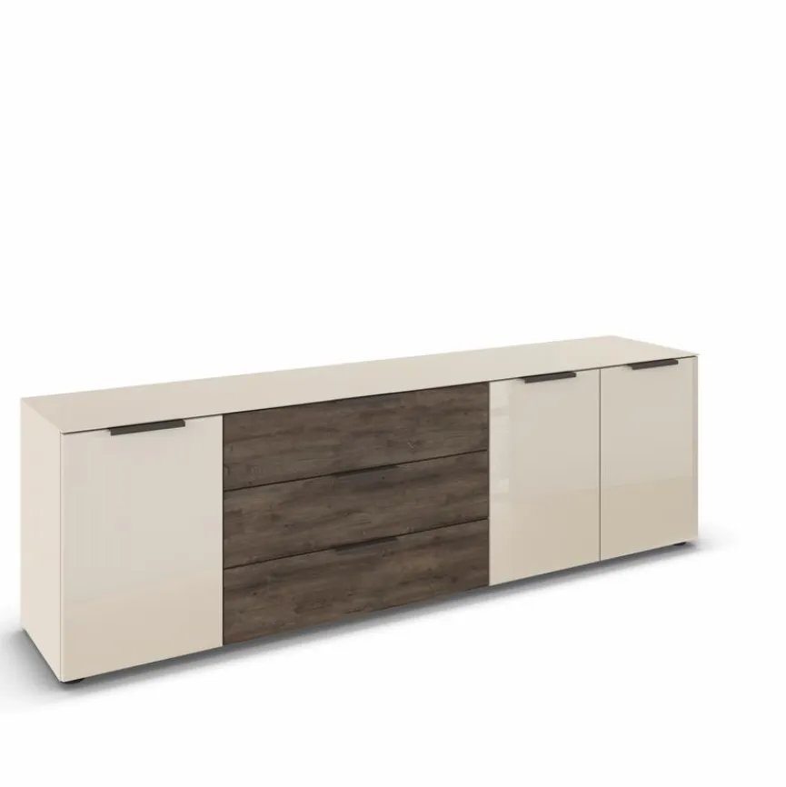 - Korpus aus Holzwerkstoff (Spanplatte) mit hochwertigem Dekor-Druck in Champagner