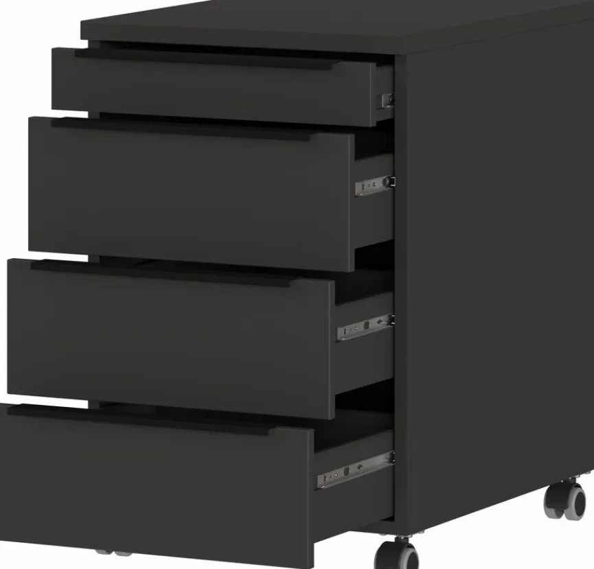 - Aus Holzwerkstoff (Spanplatte) mit kratzfester Melaminharzfolie in Graphit