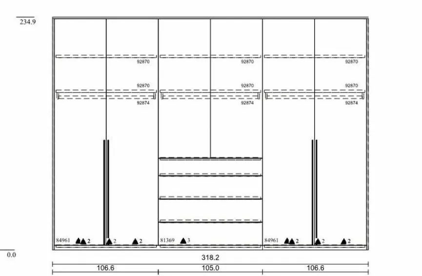 - Kleiderschrank inkl. 4 Schubkästen mittig