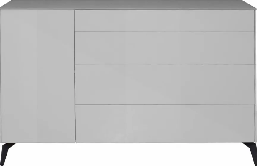 - Oberplatte, Klappe und Schubkästen aus Glas in kreidegrau glänzend
