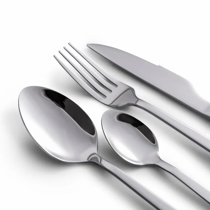 Schnörkellose Eleganz und schlichtes Design kennzeichnen das Besteck 24tlg. Je sechs Messer, Gabeln, Suppen- und Kaffeelöffel umfasst das edle Tafelbesteck, womit es eine perfekte Grundausstattung für Ihren Haushalt bietet. Das Besteck 24tlg. ist robust, liegt gut in der Hand und kann im Alltag ebenso gut benutzt werden wie für den festlichen Anlass.