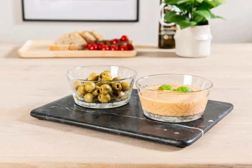 Egal, ob für Dips, Nachspeisen oder Snacks, das Set Schale Amilio 2tlg. von blomus findet vielseitige Verwendung. Stilistisch passen die hübsch gestalteten Schälchen zu jeder Art von Geschirr. Dank des Sets Schale Amilio 2tlg. genießen Sie zum Beispiel Käsewürfel mit Oliven, Kirschtomaten mit Fetacreme oder Fruchteis mit Waffelsticks.