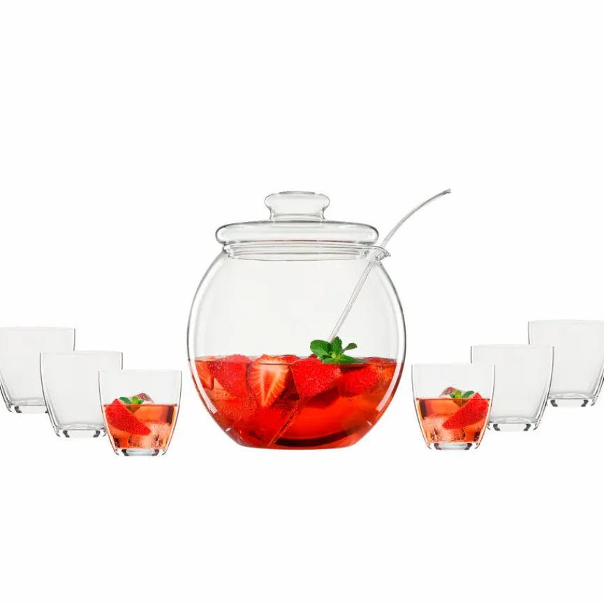 Mit dem zeitlosen Servier-Set 9tlg. von BOHEMIA Cristal sind Sie bestens für gesellige Zusammenkünfte gerüstet. Es eignet sich ideal dazu, an heißen Tagen Ihre Gäste mit spritziger Fruchtbowle oder Iced Strawberry Margarita zu verwöhnen. An Weihnachten und Silvester kommt wärmender Punsch aus dem Servier-Set 9tlg. garantiert gut bei Ihren Freunden und Ihrer Familie an.