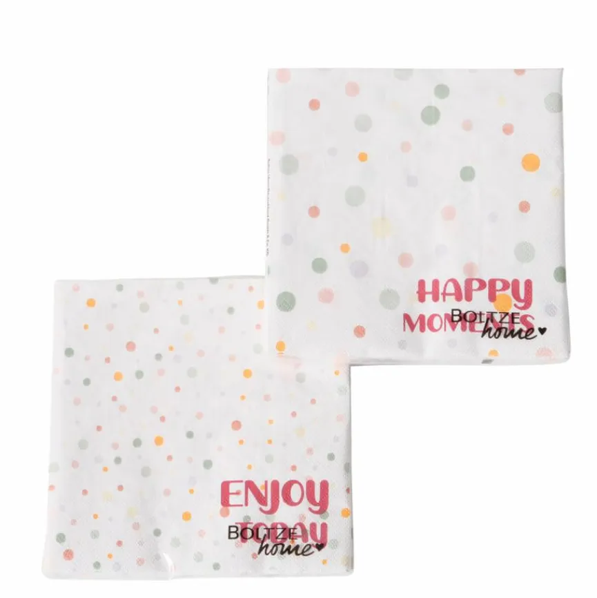 BOLTZE präsentiert die Serviette Lavina 20tlg. als charmante Tischbegleitung für besondere Momente. In zarten Pastelltönen gestaltet, versprüht sie spielerische Leichtigkeit. Die Serviette Lavina 20tlg. eignet sich ideal für Feiern mit persönlicher Note. Liebevolle Statements wie „ENJOY“ und „HAPPY MOMENTS“ runden das Design ab und verleihen jedem gedeckten Tisch eine herzliche Atmosphäre.