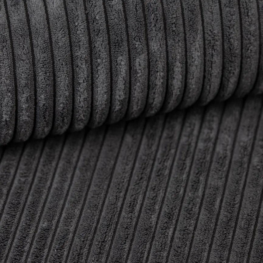 - Inkl. 3 Rückenkissen aus Stoff in Cord anthrazit und 2 Zierkissen aus Stoff in grau