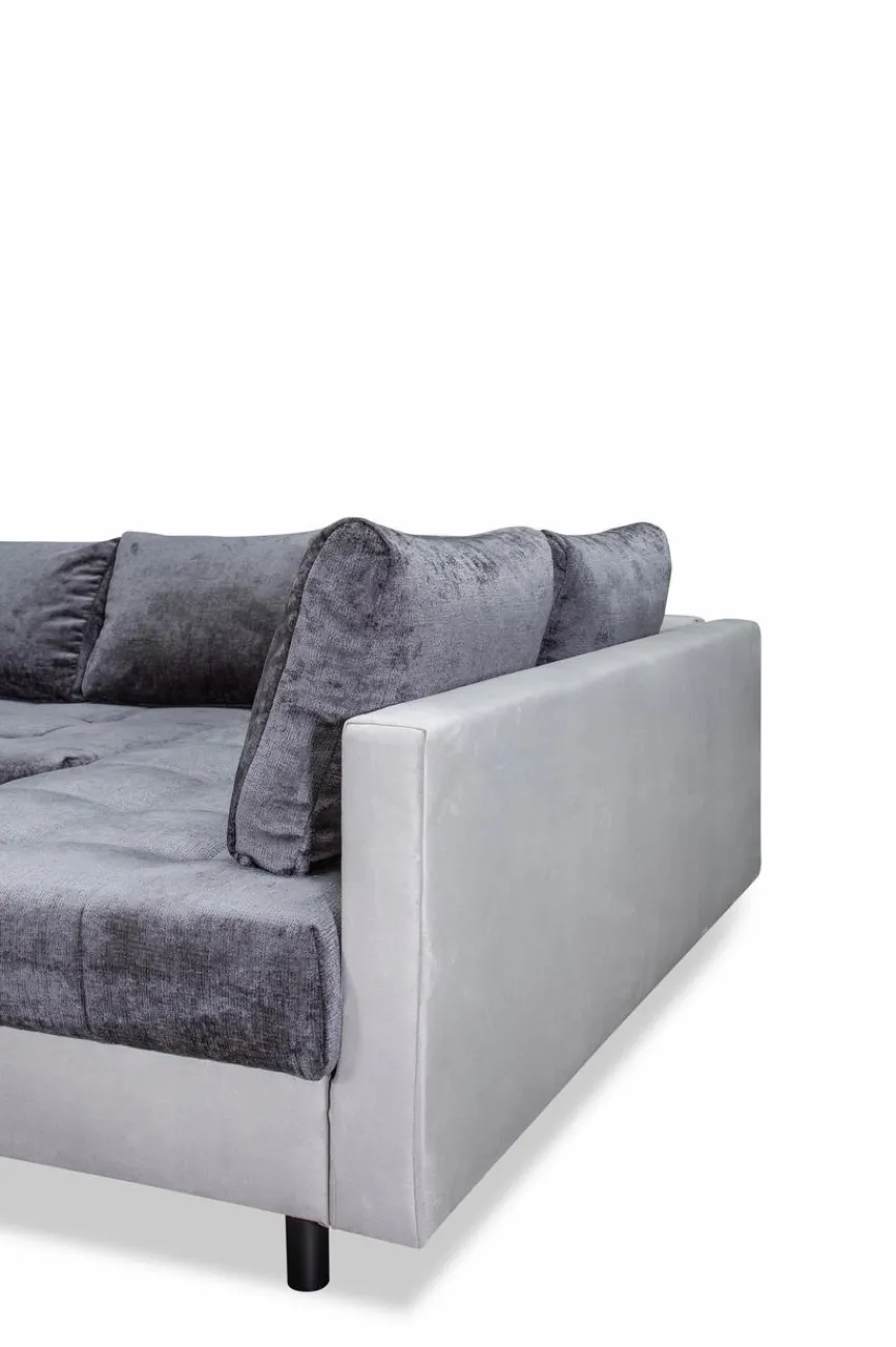 - Inkl. 8 Rücken- und 3 Zierkissen aus Stoff in Anthrazit