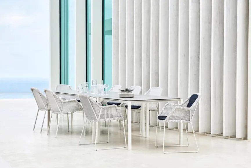Cane-line Faser wird aus durchgefärbtem, widerstandsfähigem Polyäthylen gefertigt. Der einzigartige Werkstoff ist auch bei großen Temperaturschwankungen formbeständig und lässt sich problemlos im Außenbereich nutzen.
