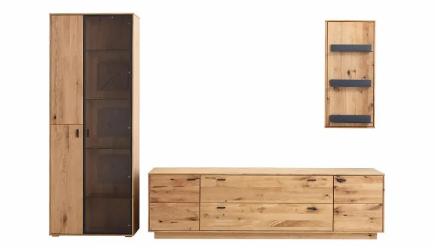 - Wohnwand aus Vitrine, TV-Lowboard und Hängeregal