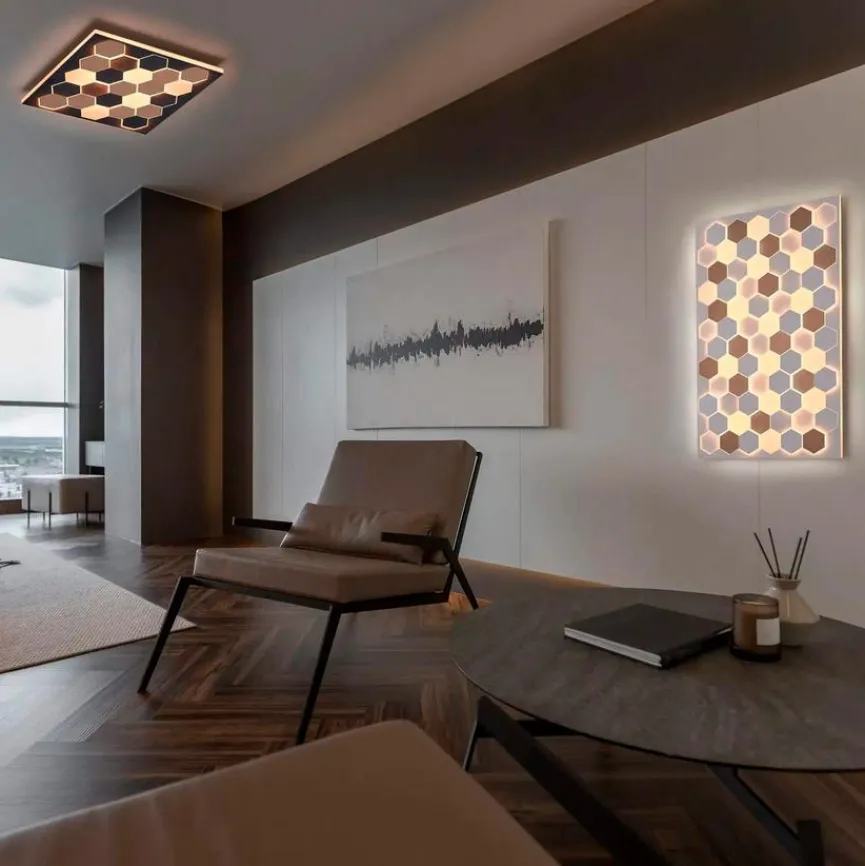 Die elegante LED-Deckenleuchte Cifavo des Herstellers Trio passt in viele Einrichtungsstile und Räume. Besonders begeistert das Wabendesign der LED-Deckenlampe, das durch die verwendeten Materialien Natur und Technik geschickt verbindet. Als Lichtquelle in einem Flur oder Wohnzimmer macht sich die LED-Deckenleuchte Cifavo ebenso hervorragend wie als reines Dekoobjekt zur Ambientebeleuchtung.