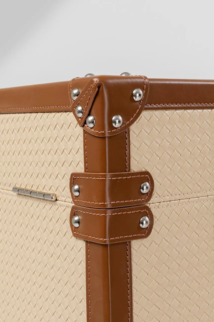 - Korpus aus Holzwerkstoff (MDF) in gebeizt und lackiert, Bezug aus pflegeleichter Lederoptik in Flechtoptik creme