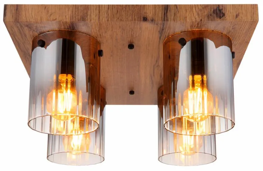 Die Deckenleuchte Underwood von Globo wirkt sachlich und modern, aber dennoch herrlich rustikal. Eine Formgebung frei von Schnörkeln sowie ein kontrastreicher Mix aus Glaselementen und einem Korpus in Holzoptik verleihen dieser Deckenlampe ihren Look. Eine sehr schöne Option stellt die Deckenleuchte Underwood zum Beispiel für einen Wohnbereich im Alpin-Chic dar.