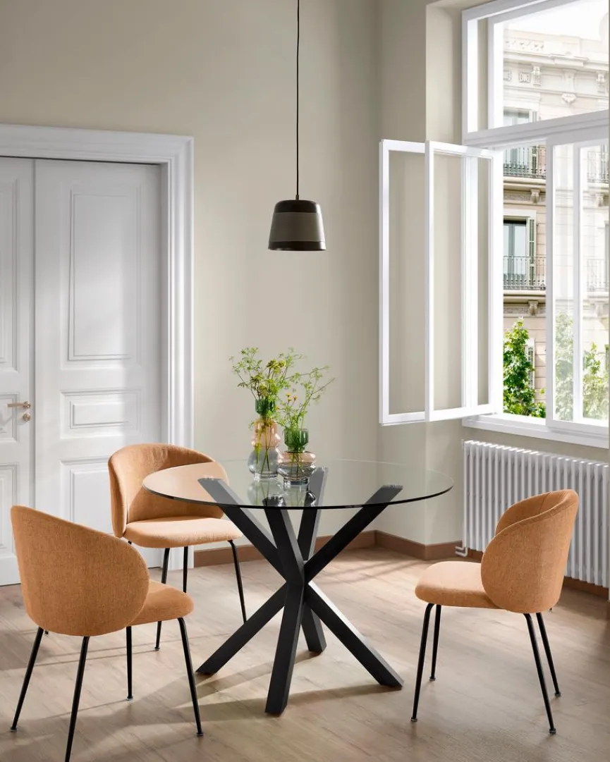 Der Esstisch Arya 119 cm von Kave Home wird der neue Blickfang in Ihrem Zuhause. Durch sein ansprechendes Gestell wirkt der Esszimmertisch schon praktisch wie eine moderne Skulptur. Der Esstisch Arya 119 cm aus dem Hause Kave Home wird Ihnen noch viele glückliche Momente bereiten.