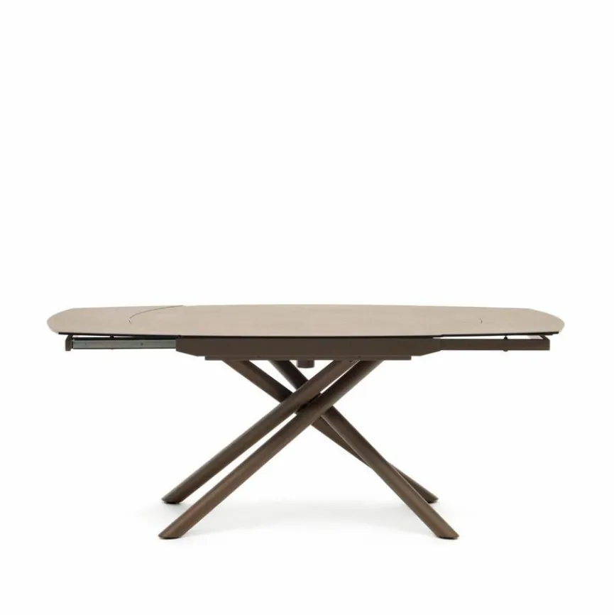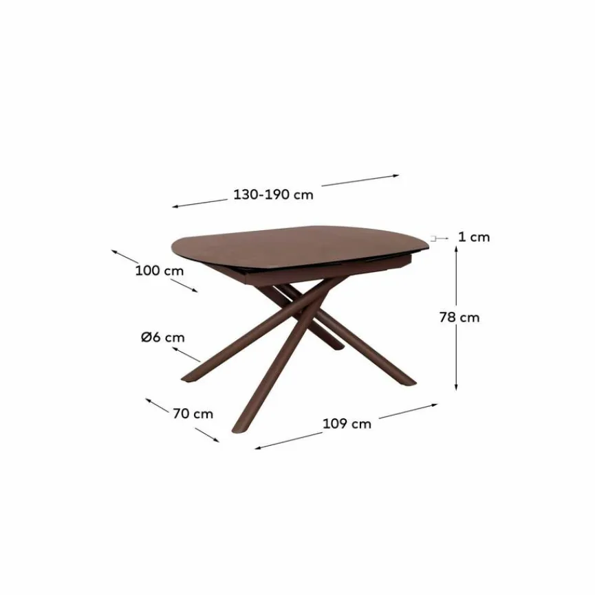 - Tischplatte aus Feinsteinzeug mit Glasauflage in braun gefärbt