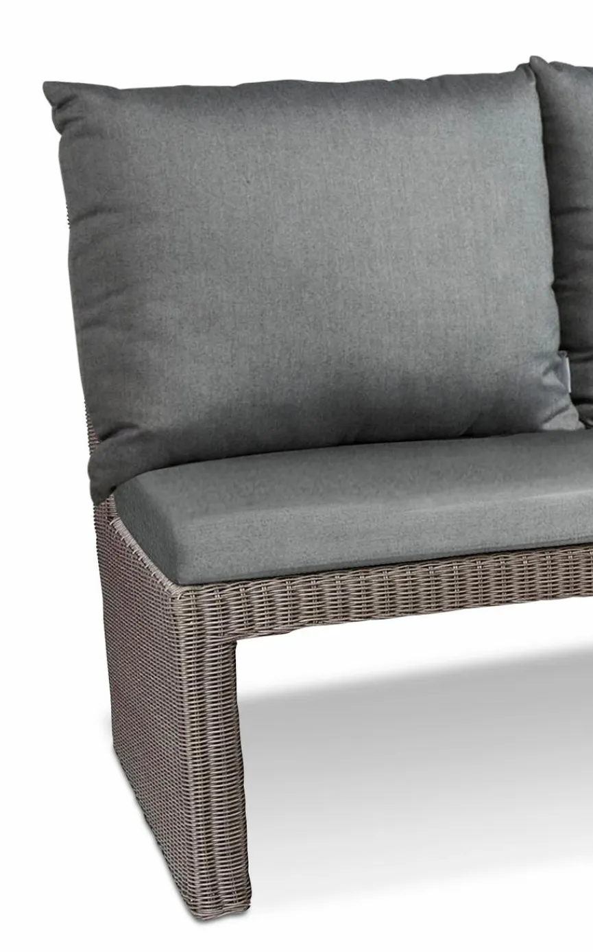 Rechwinklig- und Geradlinigkeit prägen den modernen Charakter der Gartenbank Noel, Geflecht von Stern. Aber auch der Aspekt Wohnlichkeit steht dank des Geflechts, mit dem diese Parkbank versehen ist, im Vordergrund. Die Sitz- und Rückenkissen der Gartenbank Noel, Geflecht aus dem Hause Stern sind mit einem Reißverschluss versehen.