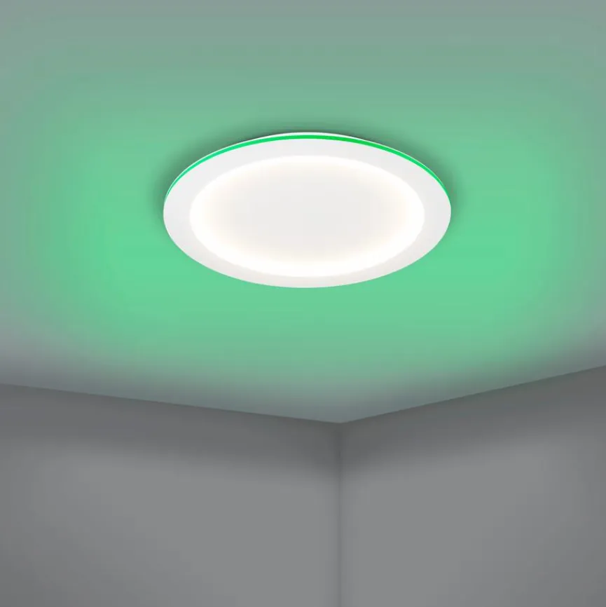 - Einstellen der Lichtfarbe (2.700 – 6.500 Kelvin), Farbwechsel (RGB) und Dimmbarkeit mit Fernbedienung (separat unter Art-Nr. 3750429 bestellbar) oder mit kostenloser AwoX home Control App über das WLAN