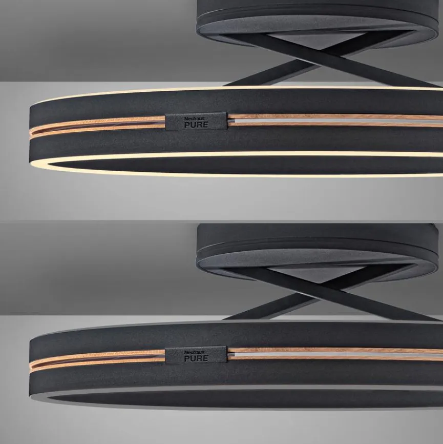 - Metall, schwarz matt strukturiert, Akzente aus Holz in Eiche geölt