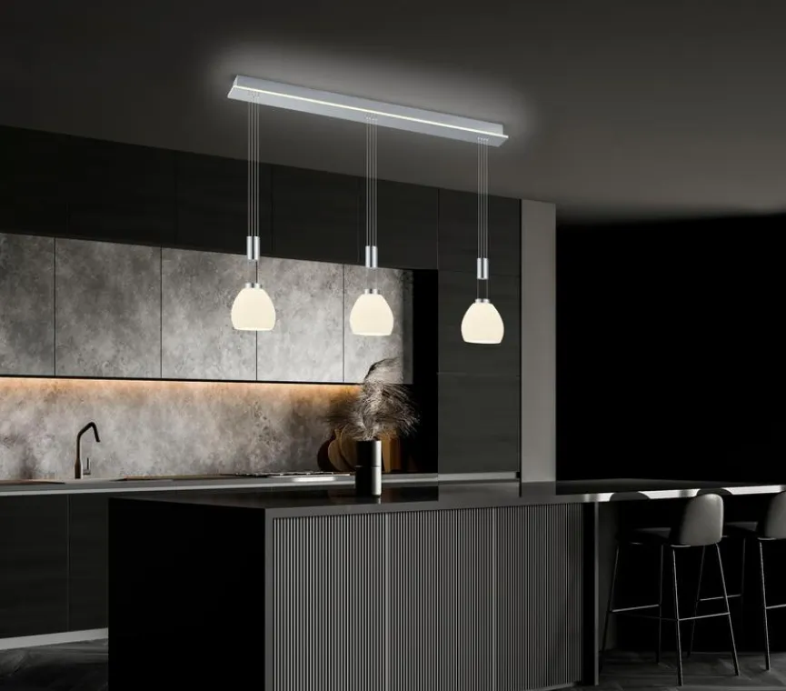 Die LED-Pendelleuchte Sam des Herstellers Hell / B-Leuchten ist vom Design her gleichermaßen eine Bereicherung für moderne und klassische Einrichtungsstile. Zudem weist die LED-Pendellampe von Hell / B-Leuchten viele funktionale Vorzüge auf. Zu nennen ist unter anderem, dass sich die LED-Pendelleuchte Sam bequem über eine Fernbedienung dimmen lässt und warmweißes Licht spendet, das aufgrund der Glasschirme absolut blendfrei ist.