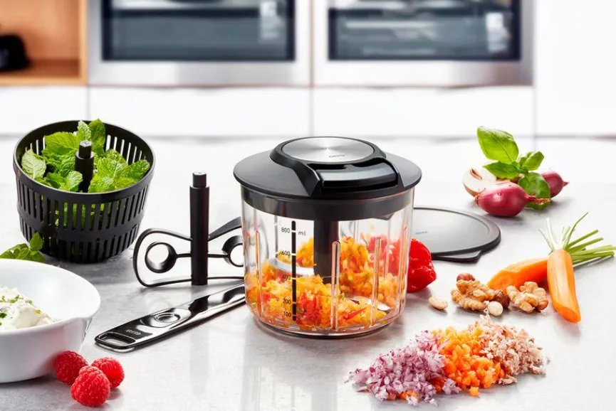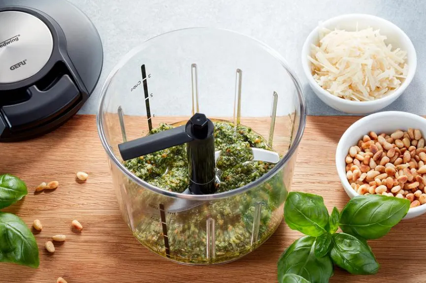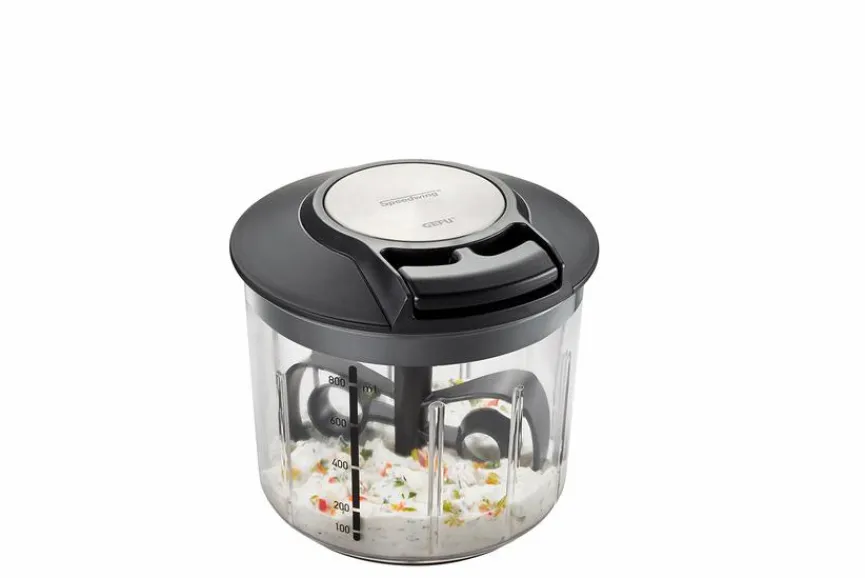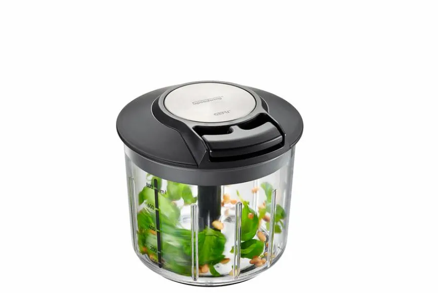 Der Multizerkleinerer Speedwing ist ein absolutes Must-have für jede Küche. Die extra scharfen Messereinsätze zerkleinern in Sekundenschnelle ganz individuell diverse Lebensmittel. Kinderleicht und effizient kann man mit dem manuell betriebene Multizerkleinerer Speedwing verschiedene Zutaten verquirlen, zerhacken, pürieren und zerkleinern. Für Salatdressing und Dips oder geschlagene Sahne wird der praktische leicht austauschbare Rühr-Einsatz verwendet.
