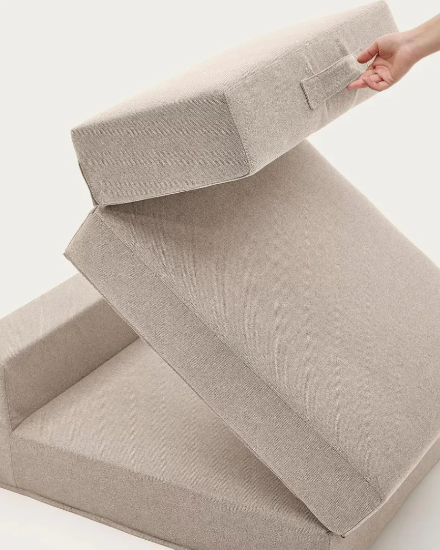 - Inkl. Kissen mit Bezug aus Stoff in beige