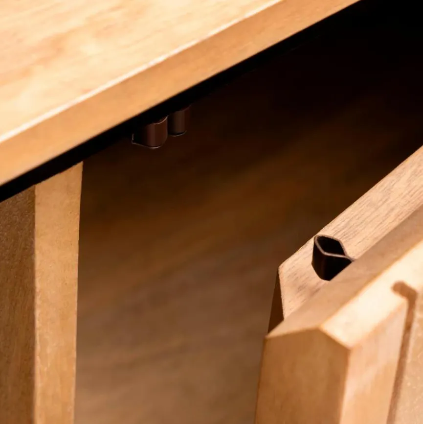 Das Sideboard Licia von Kave Home hilft Ihnen dabei, mühelos zur Ordnung in Ihrem Haushalt beizutragen. Auf der Ablage der Kommode können Sie zudem Utensilien griffbereit platzieren oder dekorative Figuren aufstellen. Dank des eleganten Looks wertet das Sideboard Licia aus dem Sortiment von Kave Home Ihre Einrichtung in jedem Fall auf.