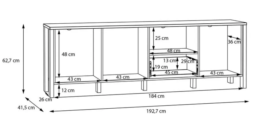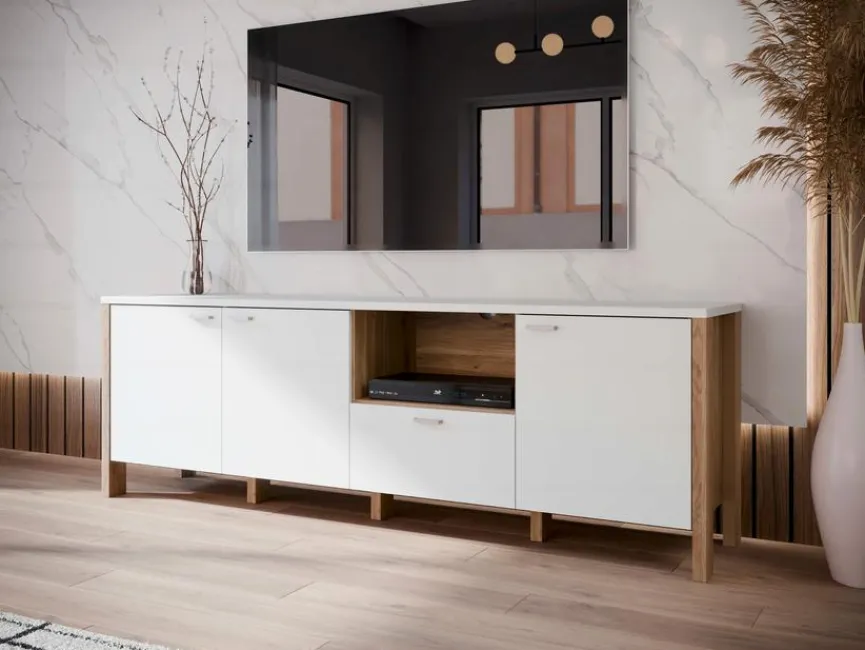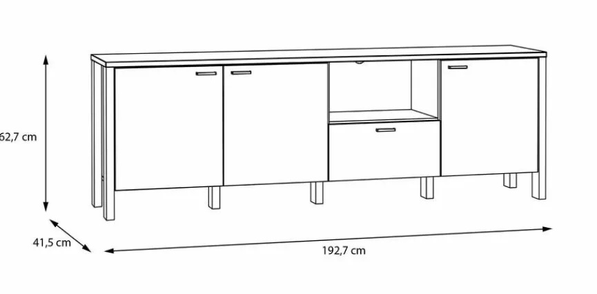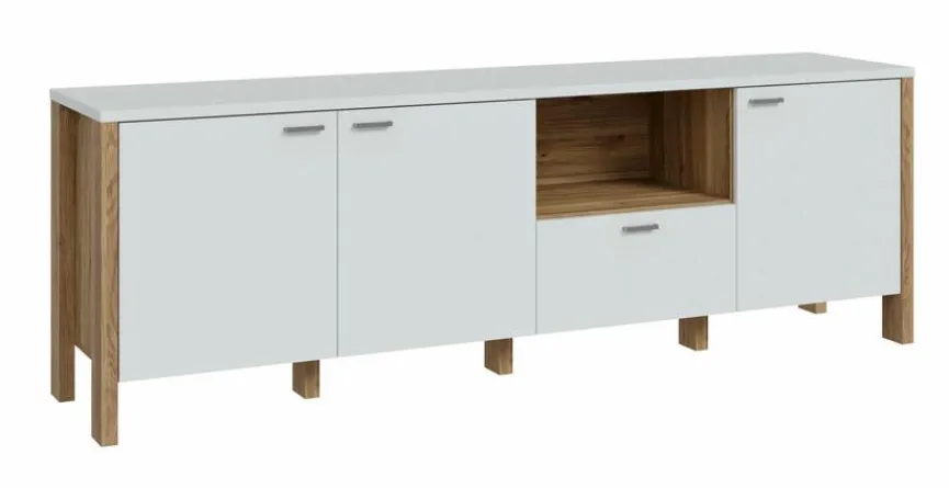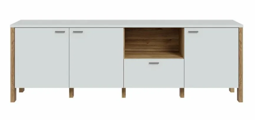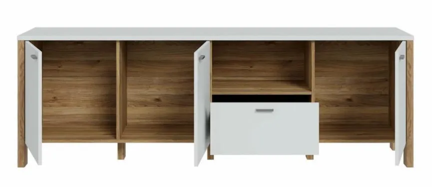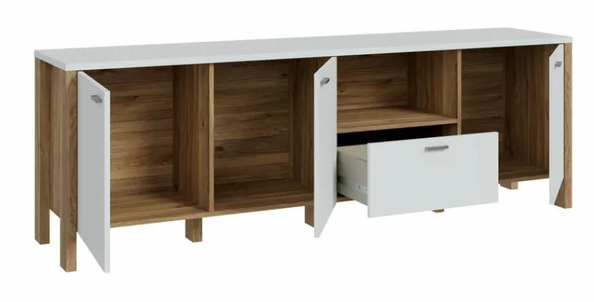- Mit 3 Türen, 1 Schubkasten und 1 offenen Fach