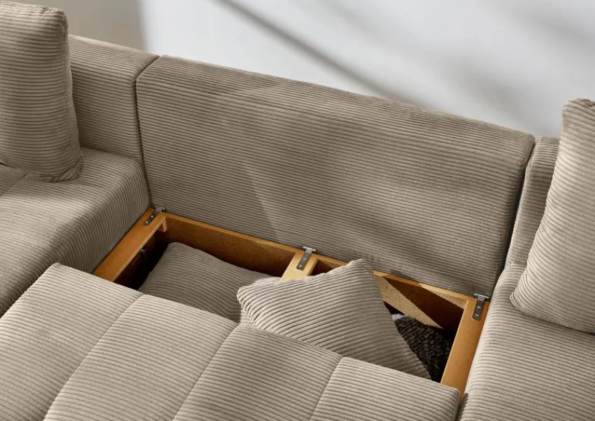 Farbe: TaupeMaterial: CordGröße: Breite: 313,00 cm, Höhe: 89,00 cm, Tiefe: 200,00 cm