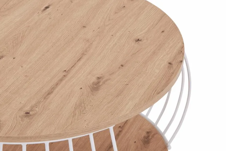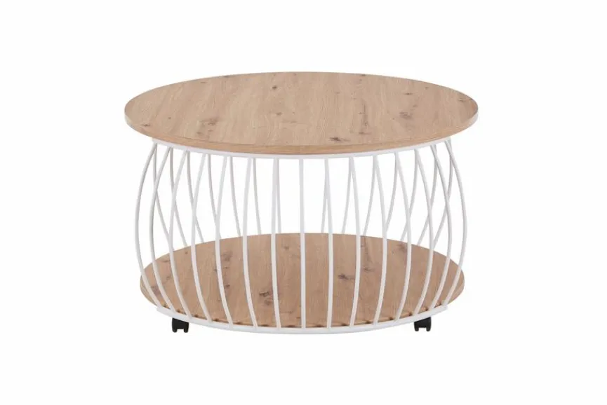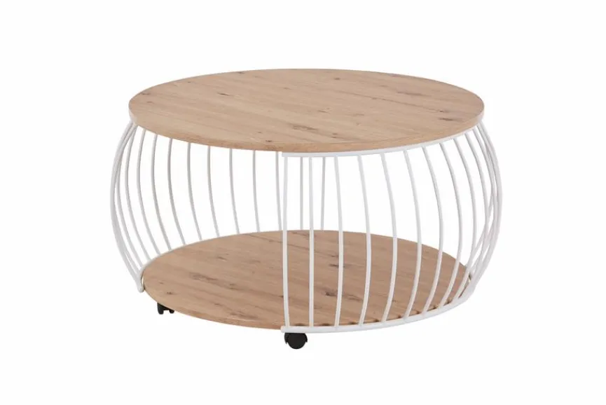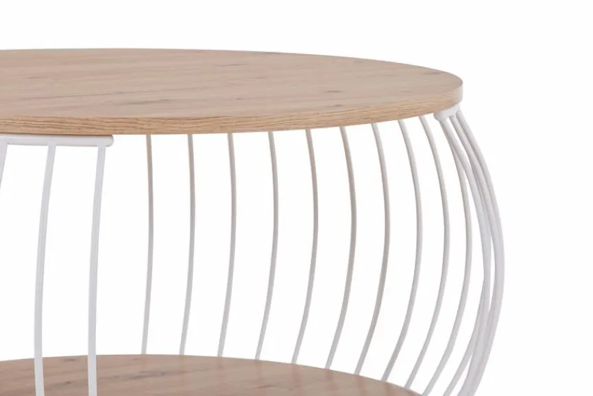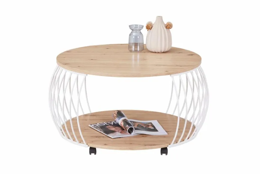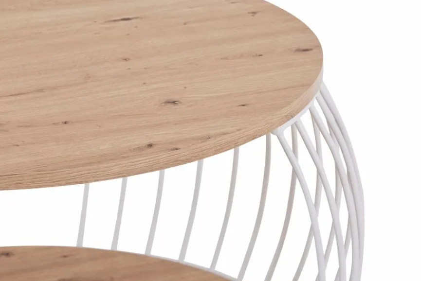Der hübsche Couchtisch Laos bezaubert durch sein luftig-leichtes Design, das die warme Natürlichkeit von Holz mit der Stabilität schmaler Metallstreben verbindet. Sie spannen sich bei diesem Wohnzimmer-Tisch leicht nach außen gewölbt von der hölzernen Tisch- zur Bodenplatte. Hier zeigt sich seine Raffinesse; Seitliche Öffnungen machen es beim Couchtisch Laos möglich, Zeitschriften oder Ähnliches hineinzuschieben und genial zu verstauen, während ihr allzu einfaches Herausrutschen verhindert wird.