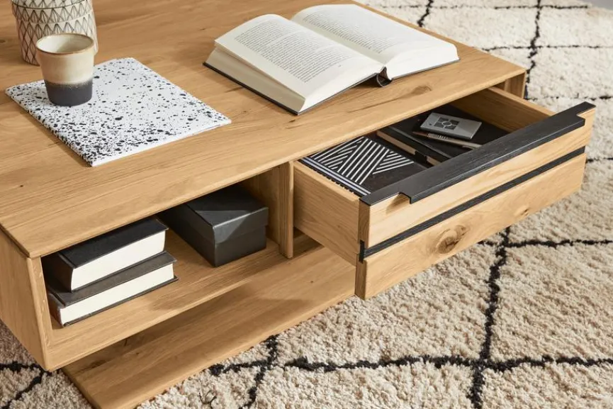 Mit dem Couchtisch Valero erweitern Sie Ihr Zuhause um ein ausgesprochen elegantes Möbelstück. Besonders praktisch ist bei diesem Wohnzimmertisch neben dem Stauraum in mehreren Fächern die einfache Höhenverstellbarkeit. Geradlinige Formen und ausdrucksstarkes Naturholz verleihen dem Couchtisch Valero ein attraktives Äußeres, das auch Ihr Interieur bereichert.