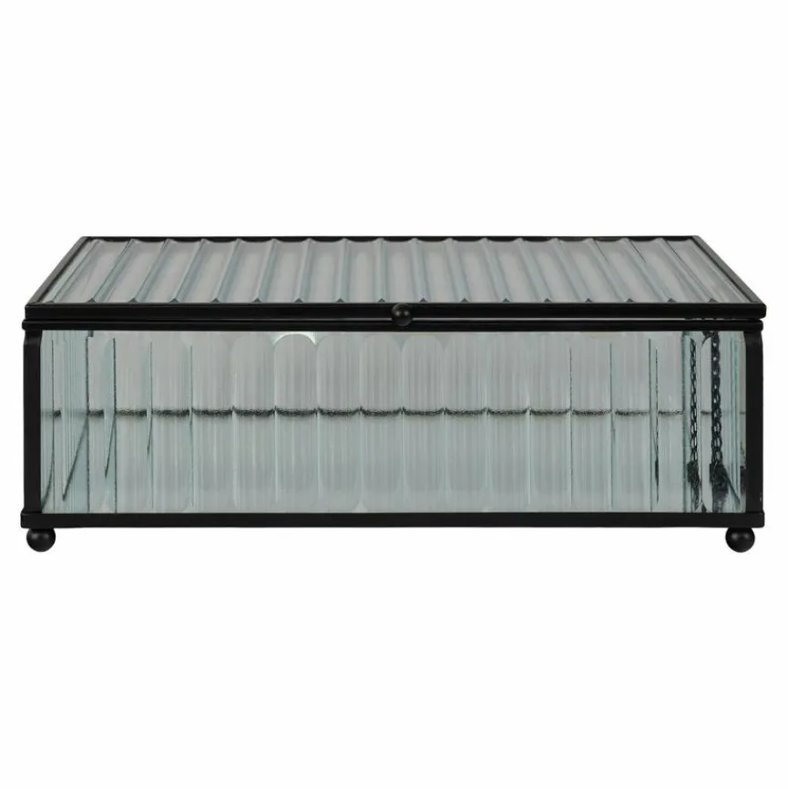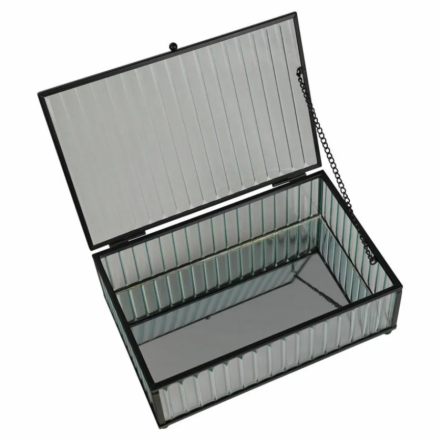 In der Aufbewahrungsbox Santorini 20×13 cm können Sie zum Beispiel lieb gewonnene Kleinigkeiten auf stilsichere Art und Weise unterbringen. Vor allem das attraktive Zusammenspiel von Glas und Metall bestimmt das ansprechende Erscheinungsbild dieser formschönen Dekobox. Dank der aufwendigen Verarbeitung werden Sie an der Aufbewahrungsbox Santorini 20×13 cm darüber hinaus lange Freude haben.