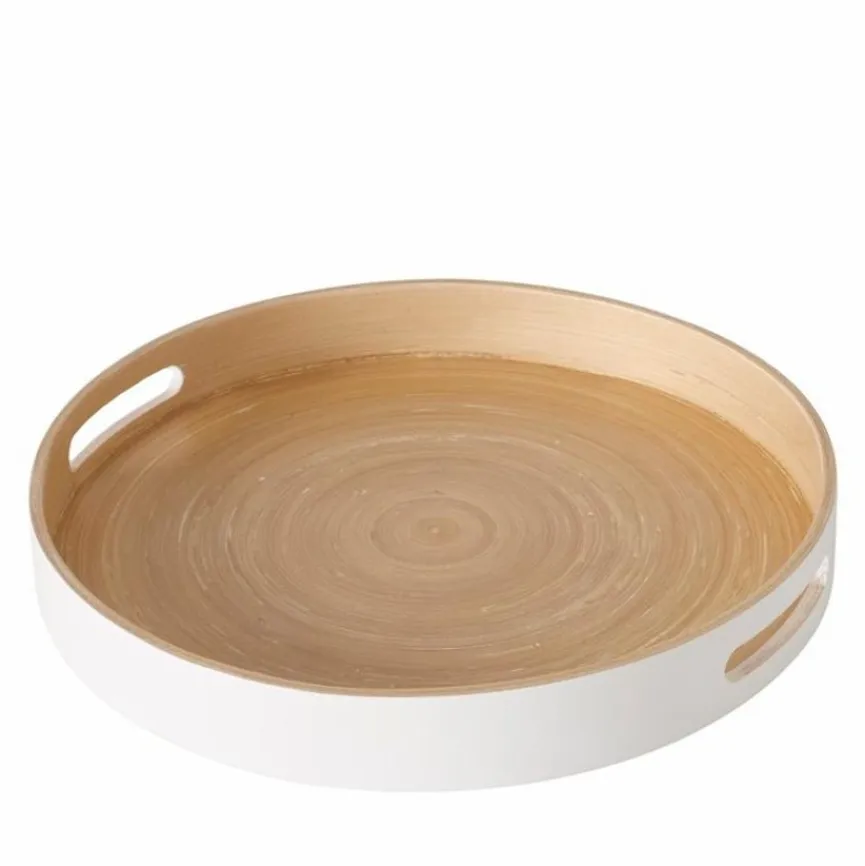 DAHEIM offeriert mit dem Tablett Bambo Ø 35,4 cm ein ästhetisches Utensil, das natürlich auch einen praktischen Zweck erfüllt. So lassen sich mit seiner Hilfe Geschirr und Snacks transportieren, es kann aber auch als Präsentationsmöglichkeit für kleine Arrangements aus Kerzen, Vasen oder anderen Dingen dienen. Empfindliche Oberflächen werden geschützt, wenn das Tablett Bambo Ø 35,4 cm als Unterlage für Gläser, Becher, Flaschen und mehr genutzt wird.