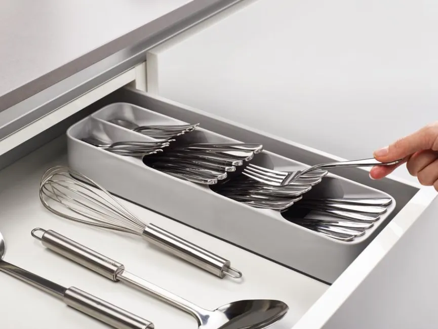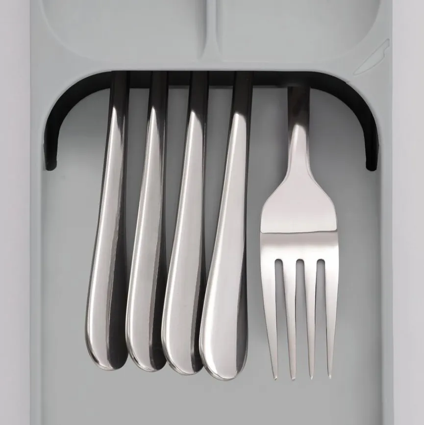 Der Besteckeinsatz DrawerStore aus dem Hause Joseph Joseph ist ein Küchen-Organiser zur Unterbringung von Löffeln, Messern und Gabeln. Schnell und simpel ist er in der Schublade an Ort und Stelle. Dank der gestapelten Fächer ist der Besteckeinsatz DrawerStore von Joseph Joseph kompakt und benötigt damit nur sehr wenig Platz.