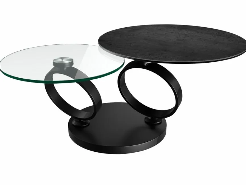 Der Couchtisch Eolia der Marke Akante ist dank seiner außergewöhnlichen Gestaltung der absolute Blickfang im Raum. Vor allem die beiden runden, ausfahrbaren Tischplatten – eine größere aus Keramik und eine kleinere aus Temperglas – verleihen diesem Wohnzimmertisch seine einzigartige Optik. Eine schwere Bodenplatte aus Edelstahl sorgt dafür, dass der Couchtisch Eolia von Akante einen sicheren Stand hat.