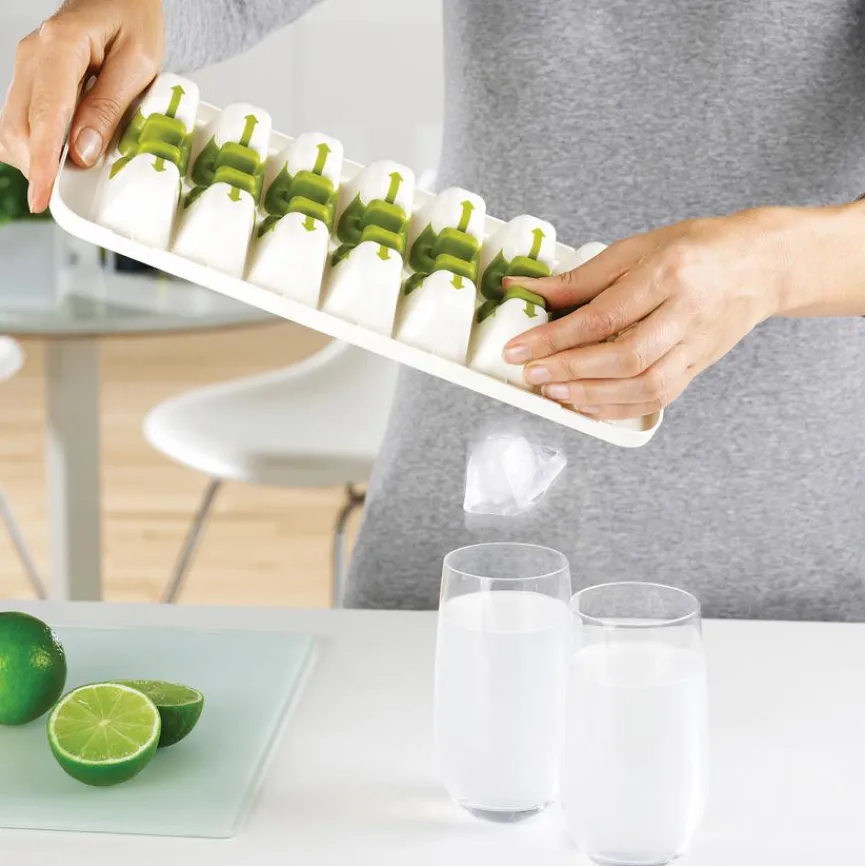 Wenn Sie zuweilen von einem tropischen Cocktail in Ihrem Garten träumen, dann kommt Ihnen die Eiswürfelform QuickSnap Plus von Joseph Joseph sicher wie gelegen. Im Nu können Sie damit perfekte Eiswürfel herstellen, um einen schönen Caipirinha oder eine Piña Colada zu zaubern. Dank Ihrer neuen Joseph Joseph Eiswürfelform QuickSnap Plus gelingt Ihnen auch ein extra frischer Yoghurt-Mix oder ein Zitronen-Gurken-Smoothie mühelos.