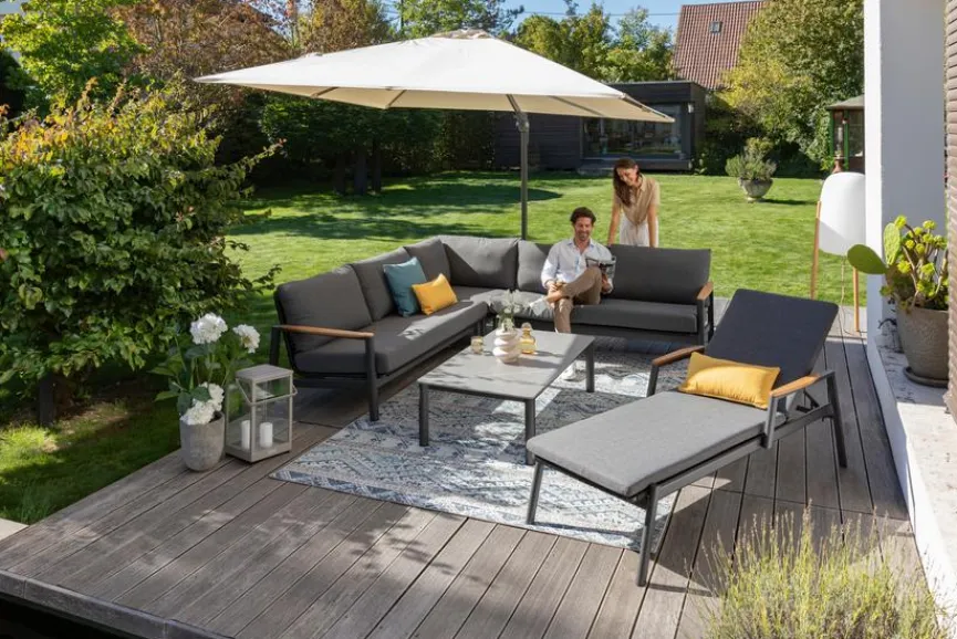 - Bezug aus 100% Polypropylen in Dunkelgrau, abnehmbar und waschbar bei Handwäsche