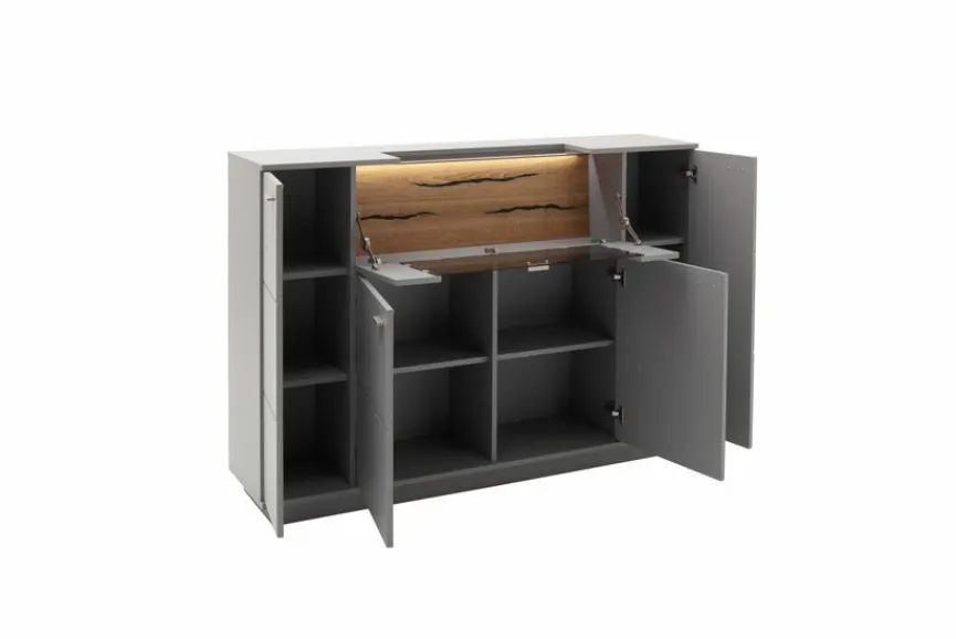 Das Highboard Sevilla aus dem Hause MCA fasziniert durch sein modernes und stilvolles Design. Mit vier Türen und einer Klappe stellt diese Kommode zudem praktischen Platz bereit. So überzeugt das Highboard Sevilla des Herstellers MCA nicht nur optisch, sondern auch durch seinen Beitrag zur Ordnung in den eigenen vier Wänden.