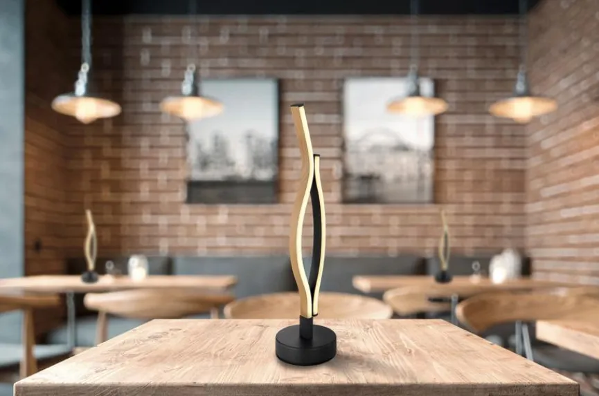 Die LED-Tischleuchte Geronimo von Globo wartet nicht nur mit einem kraftvollen Namen auf, sondern auch mit einem verwegenen, avantgardistisch anmutendem Design. Bei dieser LED-Tischlampe befinden sich die lichtspendenden Areale auf kühn geschwungenen Elementen in Holzoptik. Mit der LED-Tischleuchte Geronimo setzen Sie in Ihren vier Wänden moderne, wohnliche Akzente, die effektvoll von purer Lebensenergie zeugen.