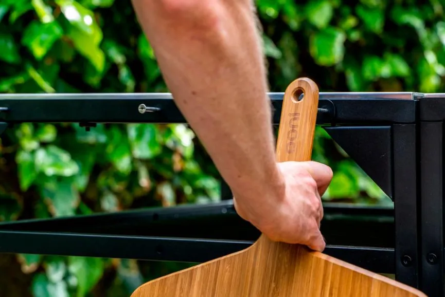 Mit den Modultisch Ersatz-Haken von Ooni lässt sich sowohl der mittelgroße als auch der große Ooni-Modultisch problemlos erweitern. Die drei zusätzlichen Hängehaken werden durch einfache Befestigung an einer beliebigen Seite des Arbeitstisches mithilfe von zwei Flügelschrauben montiert. Sie können sogar bis zu vier Sets der Modultisch Ersatz-Haken anbringen.