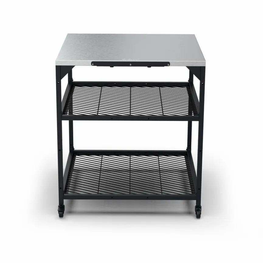 Der durchdacht konzipierte, witterungsbeständige Modultisch Pizzaofen Large von Ooni erleichtert das Zubereiten von leckerer Pizza im Außenbereich erheblich. Dank der feststellbaren Rollen steht der Arbeitstisch während des Teigknetens und Belegens der italienischen Spezialität sicher an seinem Platz. Auch als Standfläche für den Ofen der Marke und anderes Zubehör eignet sich der Modultisch Pizzaofen Large bestens, der übrigens mit weiteren Modultischen kombinierbar ist.