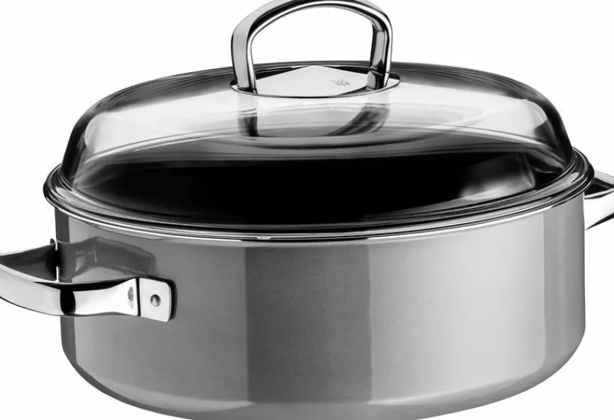 Der Schmortopf Fusiontec Mineral Ø 28 cm von WMF punktet mit einer hervorragenden Wärmeleitfähigkeit und speichert die Hitze beim Kochen zudem. So garantiert die Schmorpfanne erstklassige Kochergebnisse auf der Herdplatte oder im Ofen. Außerdem ist der abriebfeste WMF Schmortopf Fusiontec Mineral Ø 28 cm sehr unempfindlich.