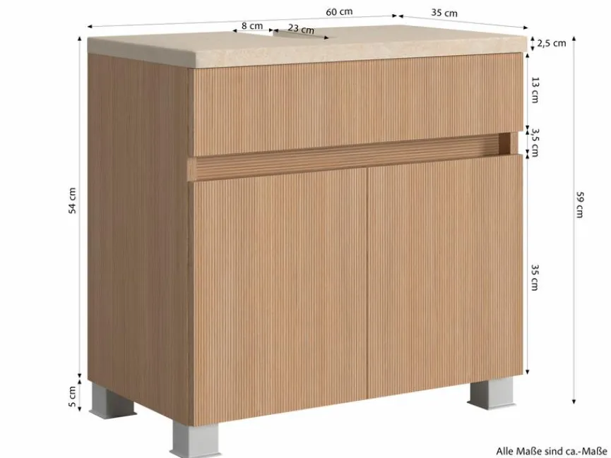 - Inkl. Möbelfüße silberfarben ca. + 5 cm (Maß nicht im Artikelmaß berücksichtigt)