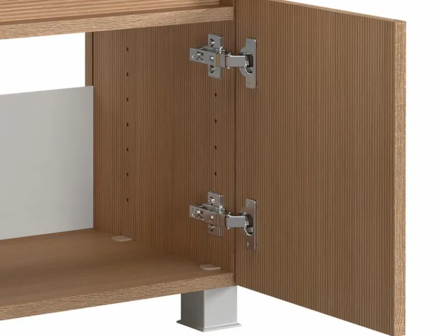- Mit 2 Türen und darüber eine feste Blende, inkl. gedämpfte Scharniere
